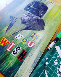 Teeny tiny pieces of paper! These works were created by cutting out paper from Frankie magazines, and pasted onto canvas and board, completed with acrylic paint. I love working with mixed media.